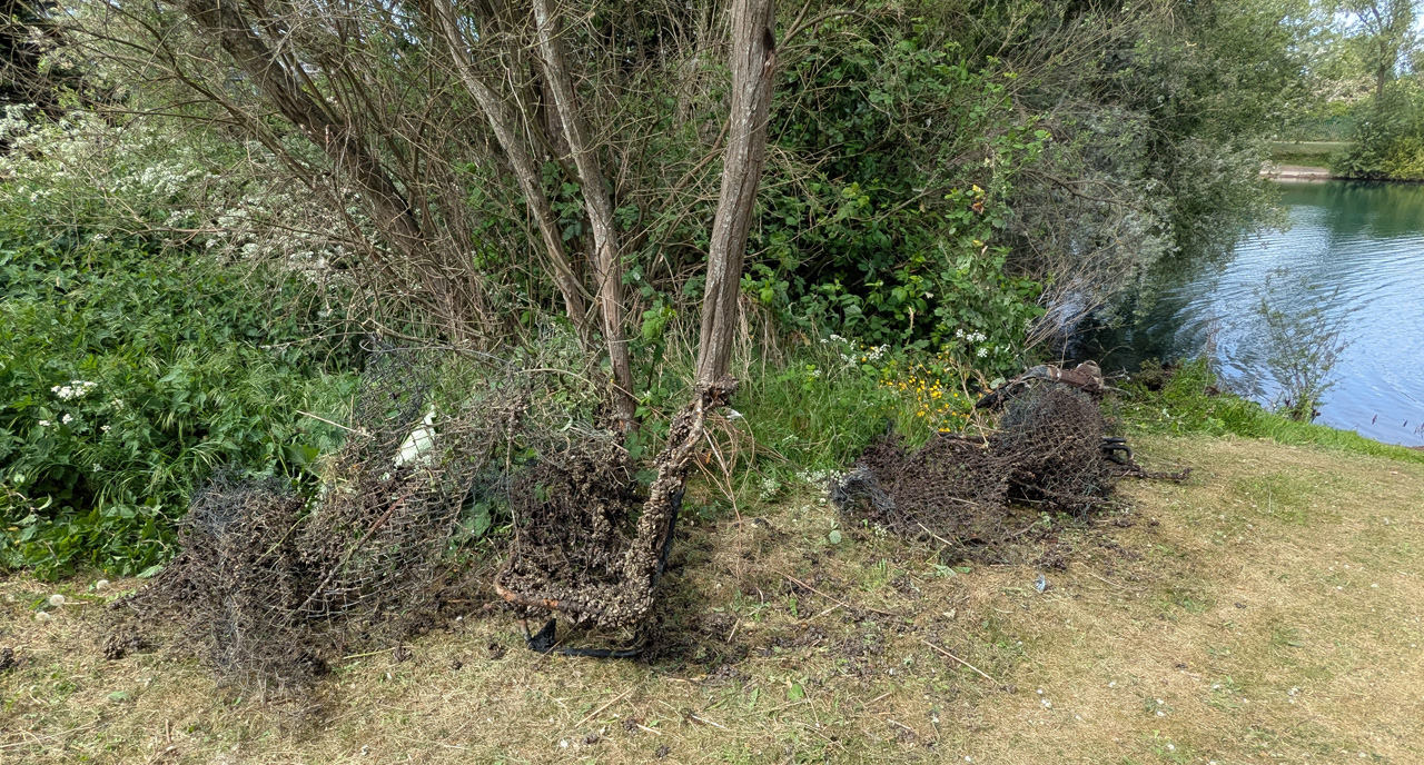 Interestingly, when we examined the wreckage it turned out the metal parts were car seat frames and there were clear signs that it had been burnt out, so somewhere in the lake are the remains of an entire burnt out car, it would seem!
