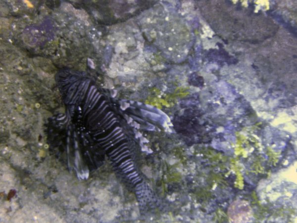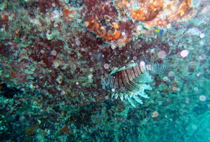 Lionfish abound, this one hides under an outcrop...