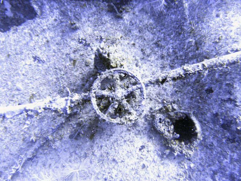 The superstructure sits vertically on the seabed and as we descended the shotline it was apparent that it’s quite a large structure. It’s a bit like swimming around a 4 story buliding on the sea bed, although there on the seabed at the stern is the screw.