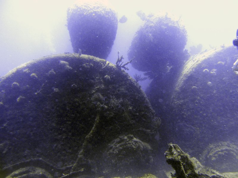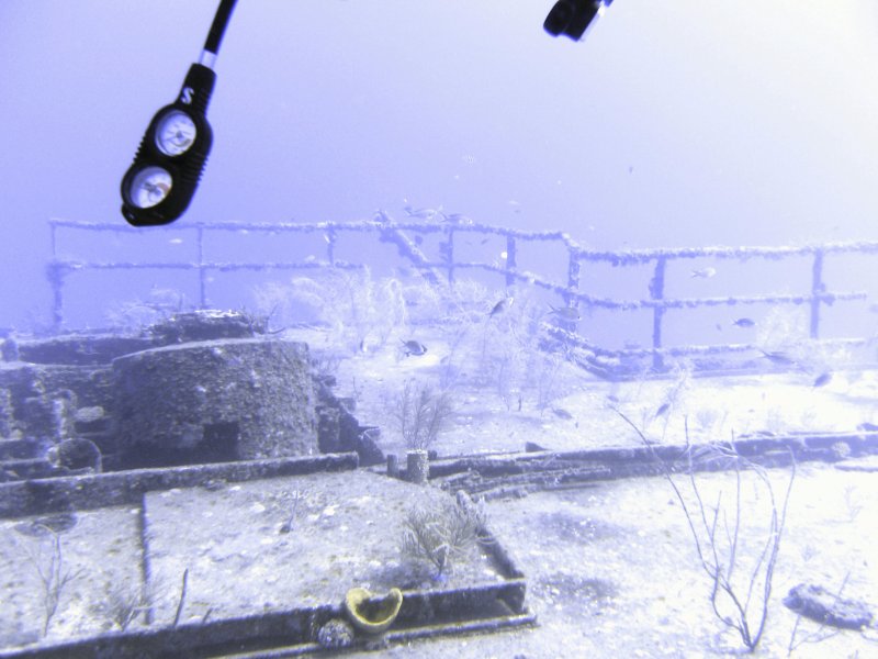 Many fittings are still in place, including hand rails and control for pumps and the whole wreck is alive with sealife, include many large Lionfish, Blue Snappers and shoals of Grunts.