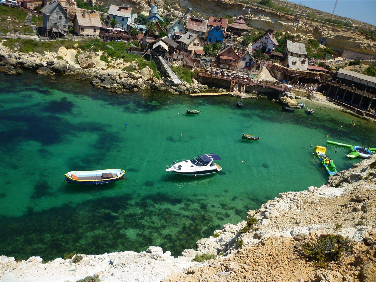In the afternoon, passing past the Popeye Village (the set built for the Robin Williams film - We paused for a look from outside, but didn't bother visiting) at Anchor Bay, we made our way to a beach at Għajn Tuffieħa Bay, where we also had a snack lunch.