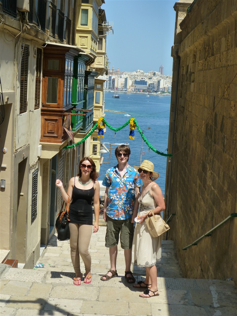 Lauren, Ryan and Mandy heading for the waterfront in Valetta